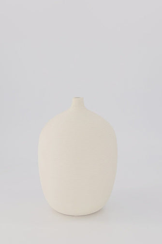 A modern, elegant addition to your home decor that is perfect for displaying coupled or individual flower stems. The sleek, geometric design is trendy and versatile, complementing different interior designs of different homes. Made of ceramic and porcelain, the high-quality vase is fit to endure daily use and has rubber attached to secure the vase in its place. There are two sizes available, with the small vase measuring 10cmx16cm and the large vase measuring 13cmx21.5cm.