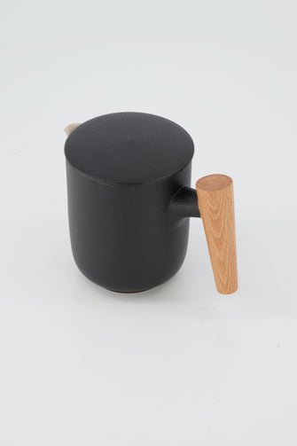 So you don't have to go without your favourite tea when you're on-the-go. This tea set is beautifully and uniquely constructed, with a porcelain body and a wooden handle. Stackable and portable, the set includes a teapot, two small teacups, a filter, a lid and a moulded, secure case for transportation. You have the option of purchasing the set or a single ceramic cup. The compacted set is 11.2cm tall, with a 5.5cm base and 8.2cm lid. The total width, including the handle, is 13.7cm